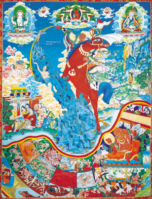 過去通過口耳相傳方式傳承的《格薩爾》,在影像時(shí)代將以生動(dòng)的形式呈現(xiàn)在銀幕上,令人期待。唐卡《地獄大圓滿》。 資料圖片