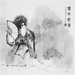 所謂“近水樓臺(tái)先得月”,搞了半輩子戲曲的陳友旺覺(jué)得,自己畫起戲曲人物來(lái)應(yīng)該是得心應(yīng)手的,比其他畫家要自然。事實(shí)也是如此,當(dāng)他拿著自己的第一幅京劇人物畫作品《孫悟空》,來(lái)到朋友開(kāi)的松筠閣出售時(shí),一位日本朋友看了十分喜愛(ài),當(dāng)即表示要買下它。
