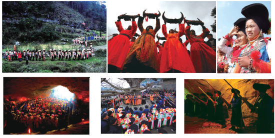 我急著深入其中去探究讓祖先得以藏身,并使得一個(gè)家族發(fā)展壯大的山洞,一睹它的神奇與秘密?;貧w祖先居所,蕩人心魄的蘆笙在山洞里陣陣響起,喚醒了地心深處的祖靈。我感覺(jué)到了大地與生命的交響,輕籠了我的一抹幽婉和感傷。