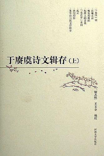 于賡虞(1902—1963),新月派詩(shī)人之一,翻譯家,1935年4月赴英國(guó)倫敦大學(xué)研究歐洲文學(xué)史。在英期間,著有《詩(shī)論》《雪萊的婚姻》《雪萊的羅曼史》等。1937年回國(guó),任河南大學(xué)文史系副教授。朱自清先生編《中國(guó)新文學(xué)大系》詩(shī)歌卷時(shí),篩過來又篩過去,還是選了于賡虞的5首詩(shī)?!队谫s虞詩(shī)文輯存》于2004年9月由河南大學(xué)出版社出版,全書85萬字,是對(duì)于賡虞的文學(xué)生涯和創(chuàng)作成就的總結(jié)。全書輯錄了于賡虞的詩(shī)歌295首,還收入了80多篇詩(shī)論文章。