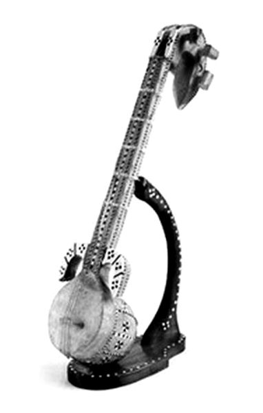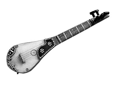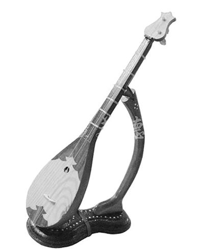 哈薩克族 冬不拉 哈薩克族民間流行的彈撥樂器。音箱用松木或樺木制成,或扁平或瓢形,琴桿細(xì)長(zhǎng),上面有8—10個(gè)品位,兩根絲弦或鋼絲弦,可奏出三至八度的和音。