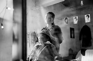 萬瑪才旦:這些鏡頭是搭景拍的,沒拍之前就設(shè)計(jì)好用鏡子作道具。比如說理發(fā)館那場戲,都是鏡子,沒有一個(gè)現(xiàn)實(shí)的意象,全部都是決定好之后再開始搭鏡子,理發(fā)館、派出所、照相館的戲,其實(shí)都是這樣拍的。這次搭的景比較多,拍得也比較快,只拍了25天,主要集中在一個(gè)院子里邊完成。