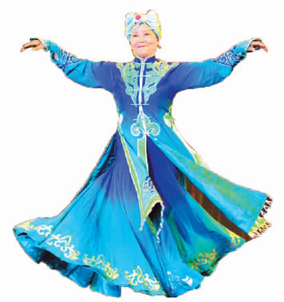 年近80歲的著名舞蹈家崔善玉(前)在表演