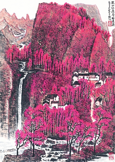 在父親個人的山水畫創(chuàng)作乃至中國山水畫的發(fā)展歷程中,《萬山紅遍》都被視為極具個人風格的作品。父親并未用過去畫作的程式去表現(xiàn)一個新的題材,而是根據(jù)新的題材去發(fā)現(xiàn)、探索一種新的表現(xiàn)語言和畫面結(jié)構。正如父親提出的“可貴者膽,所要者魂”,“膽”是大膽嘗試和突破的創(chuàng)新之“膽”,“魂”是創(chuàng)作者悉心感受和凝精聚神之“魂”。父親一直在探索山水畫表現(xiàn)的新的可能性,不斷拓展著傳統(tǒng)山水畫所表現(xiàn)的內(nèi)容、力度與深度。