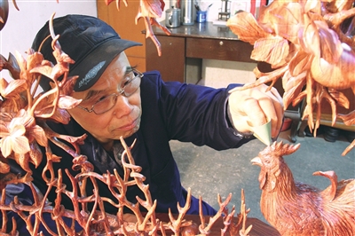 記者了解到,經(jīng)過多年的努力,王樹元的“津派木雕藝苑”已培養(yǎng)出了20多名傳人,其中7人已具備較高技藝,4人已自主創(chuàng)業(yè)。王樹元說:“天津木雕的興盛源自清末漕運(yùn)的發(fā)達(dá),木雕作品中也蘊(yùn)含著無數(shù)民俗風(fēng)情與多元文化,它忠實(shí)地見證并記載了歷史的變遷。雖然現(xiàn)在我有了傳人,可在下一代的傳承依然是個(gè)問題,津派木雕不僅是天津的名片,更是中國的瑰寶,今后我會(huì)繼續(xù)發(fā)揚(yáng)津派木雕的傳承,讓這一技藝經(jīng)久不衰。”