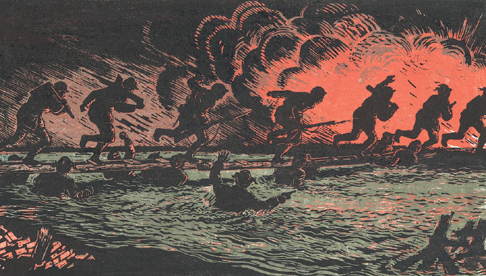 抗日戰(zhàn)爭結束后,古元離開延安,人生歷程和藝術道路都在經歷著改變。創(chuàng)作于這一時期的《焚毀舊地契》《人橋》等作品已經成為中國美術史上的經典,這源于古元對現實生活的真實感受和藝術提煉。他曾說:“風格是隨時代、環(huán)境和其他外來因素和主觀感受而變遷的。” 所以在新中國成立初期,古元不但創(chuàng)作了大量反映新中國社會建設的作品,如《鞍鋼之修復》等,還將關注的目光放在普通工人、農民和市民的普通生活上。在面對這個全新世界時,古元用自己的藝術捍衛(wèi)著心中的和平與自由。抗美援朝開始后,古元和許多藝術家一起,親赴戰(zhàn)場第一線去慰問、采風、收集創(chuàng)作素材,在戰(zhàn)火紛飛的戰(zhàn)場上,他用自己的畫筆記錄了志愿軍戰(zhàn)士和朝鮮人民真實的戰(zhàn)斗生活。此次展覽展出了古元在朝鮮戰(zhàn)場的速寫作品,觀眾可以通過這些展品去感受戰(zhàn)爭的殘酷,以及普通民眾對于和平的渴求與希望。