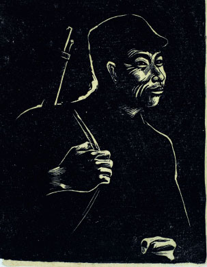 “走向自由”是古元走上藝術道路之后創(chuàng)作的第一套木刻連環(huán)畫,主人公的原型是護送古元自西安奔赴延安的一位八路軍戰(zhàn)士,講述的是出身雇農的“他”飽受地主壓榨、資本家剝削、日寇侵略等悲慘的遭遇之后,參加抗日軍隊蛻變成一名革命戰(zhàn)士的故事,雖然這套作品在創(chuàng)作手法上仍受西方版畫的影響,但在創(chuàng)作主題上卻隱藏著古元親身的經歷與思想蛻變的過程。古元出生于廣東沿海地區(qū)的一個巴拿馬歸僑之家,自幼接受的是“和氣致祥百忍成金處世端資退讓,厚德載福惟善為寶持身貴養(yǎng)謙光”的家學,青年時期的古元出于內心中對自由的理解和向往,只身奔赴千里之外的革命圣地——延安。在那里,他用木刻真實地再現了抗日戰(zhàn)爭時期抗日部隊和敵后民眾樸實的戰(zhàn)斗與生活。在烽火年代中,他憑借對抗戰(zhàn)勝利和民族解放的崇高信仰,以木刻為武器,用一幅幅版畫去鼓舞廣大民眾實現抗日救亡的理想。如果說人生需要一個態(tài)度,藝術需要一種精神的話,那么“走向自由”無疑是對古元藝術人生最真實的寫照。