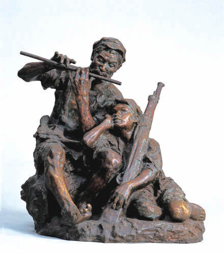 潘 鶴:我希望現(xiàn)在的青年雕塑家要用真情實(shí)感做雕塑,因?yàn)樘摷俚母星轶w現(xiàn)在雕塑上將沒(méi)有生命力。如果為了錢,那就不如改行做生意。藝術(shù)是充滿感情的,是代表真善美的,怎么能成為牟利工具?人們說(shuō)現(xiàn)在這樣的狀況是因?yàn)樗囆g(shù)推向了市場(chǎng),那愛(ài)情能推向市場(chǎng)嗎?我在上世紀(jì)70年代之前做了百余個(gè)雕塑,完全沒(méi)人給我一分錢,包括后來(lái)進(jìn)入教科書(shū)的《艱苦歲月》等作品,都是有感情要抒發(fā)才做雕塑。到了70年代后期,為國(guó)家做的雕塑才有報(bào)酬。但是我堅(jiān)持一點(diǎn),一定要有真情實(shí)感。