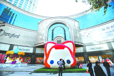 大上海時代廣場的阿貍主題展,門口巨大的阿貍腦袋其實是個咖啡屋。