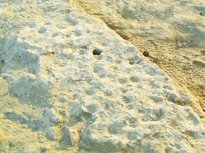 北庭故城城墻上清晰可見的夯窩。本報(bào)記者 王瑟攝/光明圖片