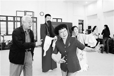 蔡正仁(左)、張靜嫻手把手教授昆五班學員。 蔣迪雯 攝