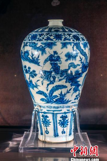 不過,為防止仿制,國寶的保管單位嚴(yán)格規(guī)定:僅一面可以公開展示,即使在介紹畫冊中,也只出現(xiàn)過“韓信”的局部小圖,“甚至還在細(xì)節(jié)處PS過”;同時(shí),這座梅瓶也被列入不得走出國門展示的國寶名單?!吧踔敛荒芙o其稱重,因?yàn)榇善鞯闹亓渴氰b定瓷器真?zhèn)蔚囊粋€(gè)重要數(shù)據(jù)?!眳顷D解釋。
