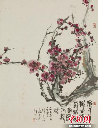 圖為錢(qián)大禮中國(guó)畫(huà)《紅梅圖》。 浙江美術(shù)館 攝