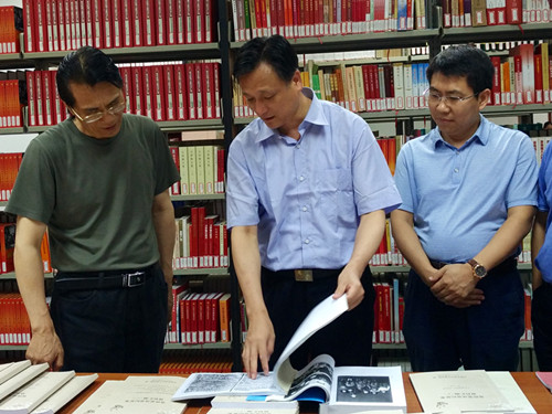 何建明代表中國(guó)作家出版集團(tuán)向中國(guó)井岡山干部學(xué)院贈(zèng)送了文學(xué)圖書。