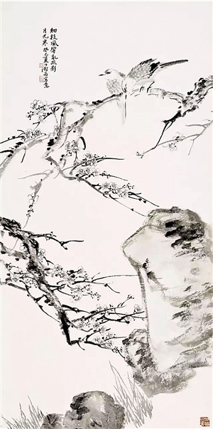 談及心目中的藝術(shù)典范,陰澍雨毫不諱言對黃賓虹的評價,認(rèn)為他“不是在藝術(shù)形式的創(chuàng)新,而是呈現(xiàn)一個大的繪畫境界”?!扒嗵侔讞睢保鳟嫾倚煳寂c陳淳的合稱)更是他所追求的一種高度?!拔覍W(xué)習(xí)更多的是‘青藤白楊’,特別是明代花鳥畫大師陳白陽?!痹陉庝暄壑?,這位明代中后期活躍在蘇州一帶的重要花鳥畫家,擁有比較豐富的技法形態(tài),深諳花鳥畫中的語言,同時擅詩文書法,全面的文化修養(yǎng)綜合造就了其繪畫風(fēng)格。也因此,陰澍雨表示,從氣質(zhì)來講,他比較傾向于陳白陽的繪畫風(fēng)格。