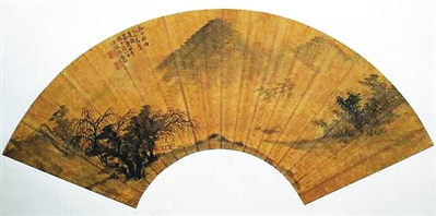 扇畫的落款時(shí)間是“嘉慶廿年端午后一日”,即嘉慶二十年(1815)農(nóng)歷五月初六,張?jiān)泪录螒c十四年(1809)中探花,授予翰林院編修職務(wù),兩年后嘉慶十六年(1811)秋,張?jiān)泪乱愿赣H八十大壽為由請(qǐng)假南歸,祝壽后繼續(xù)請(qǐng)假在家陪侍父親,不料,嘉慶十八年(1813)正月,張?jiān)泪赂赣H突然因病去世,所以張?jiān)泪戮筒坏貌焕^續(xù)待在家里守制三年。根據(jù)清朝的禮制,守制滿二十七個(gè)月即可當(dāng)三年。嘉慶二十年(1815)四月,張?jiān)泪率刂破跐M,就可以回京復(fù)職。古時(shí)由于交通不發(fā)達(dá),舟楫是南方人最主要的交通工具,張?jiān)泪卤鄙现性宰咚窞橹?,去京城要走好幾個(gè)月。端午后一日正好是張?jiān)泪路稻?fù)職的途中,應(yīng)該說(shuō)當(dāng)時(shí)張?jiān)泪滦那楸容^復(fù)雜,一方面他一路走一路游山玩水,美景勝概盡收筆下,每到一處寫下了很多贊美的詩(shī)文,吟詩(shī)作文之余,畫一把扇子,以備避暑之用便是順理成章、再正常不過(guò)之事了。另一方面,他守制賦閑在家?guī)啄辏智鍍?,一想到又要重回官?chǎng),爾虞我詐,大有山雨欲來(lái)之勢(shì),于是他有感而發(fā)、心隨筆運(yùn)、凝思成景,一幅仿元人的《溪山欲雨》圖便躍然紙上,也因此暗示將要面臨的官場(chǎng)險(xiǎn)境。值得一提的是,三年后,嘉慶二十三年(1818),張?jiān)泪乱蜃搿睹麒b》按語(yǔ)錯(cuò)誤被革職,似乎冥冥中已有安排,三年前就有預(yù)感,世上之事就有這么巧合。“零縑殘墨,人多寶之”,當(dāng)這把折扇被用爛以后,就被有心人拆下扇骨裱成扇面悉心收藏,故得以留傳至今。