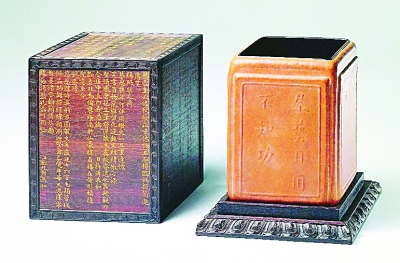 史載,康熙、乾隆對(duì)葫蘆器都十分喜愛,不但下旨宮內(nèi)太監(jiān)們制作并督促檢查,而且還躬親其事,參與器形與花紋圖案的設(shè)計(jì)。葫蘆器曾不止一次地引得乾隆皇帝詩興大發(fā),在現(xiàn)存的《御制詩集》中,吟詠葫蘆器的作品就有十多首,如《詠壺盧碗》《詠壺盧瓶》《詠壺盧合子》等。他在這些詩里不但介紹葫蘆器的制作方法,還對(duì)葫蘆器的形、色大加贊賞,喜愛之情溢于言表。如他在《恭題壺盧碗歌》一詩云:“葫蘆碗逮百年矣,穆如古色含表里。摩挲不忍釋諸手,‘康熙御玩’識(shí)當(dāng)?shù)??!薄澳﹃蝗提屩T手”一句,形象地表現(xiàn)了乾隆帝對(duì)葫蘆器的濃厚興趣。“上有所好,下必甚焉”,因?yàn)榛实巯矏?,所以葫蘆器在清宮不僅只是一種玩物,而是變成了一種重要的文物,君臣之間相互贈(zèng)送,王公貴族以能得之為榮??滴踉谇∧暧讜r(shí)就曾送給他一具四方形葫蘆筆筒,幾十年后乾隆睹物思人,寫了一首《詠葫蘆筆筒》的詩,中有“豈知貯筆成清供,徒憶含飴拜圣恩”之句,回憶乃祖之厚愛。乾隆二十六年皇太后七十大壽,在各地所進(jìn)壽禮中,葫蘆器竟有百種之多。葫蘆器還被當(dāng)成珍貴的禮物,屢屢贈(zèng)送給各地番王及外國客人,故宮博物院所藏清內(nèi)務(wù)府陳設(shè)檔中,有不少此類記載。