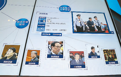 多媒體技術(shù)在展區(qū)得到了廣泛的運(yùn)用。走進(jìn)“全面依法治國,走向偉大復(fù)興”展區(qū),便見巨型LED屏幕環(huán)繞在展廳上方,展廳中央有一個(gè)大型的觸屏控制臺(tái),上面展示的是近年來較為典型的各類案例,如“薄熙來案”“周永康案”“湄公河劫持中國船只案”等。輕輕一點(diǎn),該案例的具體內(nèi)容、審判視頻就會(huì)呈現(xiàn)在上方的大屏幕上。