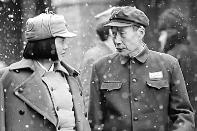 電影開演,銀幕上是黑白色調(diào),茫茫風(fēng)雪中,一些被動員來支疆的女戰(zhàn)士因不滿上級介紹對象,紛紛帶著情緒要離去。這時(shí),一輛軍用吉普車駛來,甘祖昌出現(xiàn)了。他不是來阻止、批評她們的,而是來送送這些女戰(zhàn)士,他說,無論去留,你們都是建設(shè)祖國的好青年!一組簡短的鏡頭,演員李雪健就把一位經(jīng)歷過二萬五千里長征,一身英氣、可親、可敬的形象,定格在銀幕上。陶慧敏飾演的龔全珍——那個(gè)有著一雙純情、羞澀、美麗的大眼睛的女孩也在場,這是她初識“甘部長”。隨后,影片跟從故事的發(fā)展,由黑白片轉(zhuǎn)為彩色片,于細(xì)節(jié)處展現(xiàn)甘祖昌和龔全珍這對革命伉儷扎根家鄉(xiāng)、建設(shè)家鄉(xiāng)的時(shí)代語境,其中既有對甘將軍艱苦奮斗的現(xiàn)實(shí)主義刻畫,也有對龔全珍一生相隨、大愛無私的浪漫描繪。