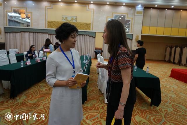鐵凝與意大利漢學家雪蓮在開幕式后展開交流