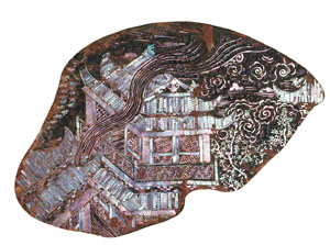 嵌螺鈿廣寒宮圖漆器殘片(元) 首都博物館藏