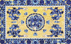 宮毯以羊毛、蠶絲、金線、棉線為主要原料,經(jīng)緯線交錯(cuò)為毯身結(jié)構(gòu)的傳統(tǒng)手工織毯,堪稱“經(jīng)緯線上的格律詩” 。元代北京的青塔寺就是專門織造宮廷用毯的地方。明清兩朝沿襲元代的織做工藝,并向精細(xì)多樣化方向發(fā)展。1903年,清廷在北京設(shè)立地毯傳習(xí)所,由宮廷技師傳授技藝。宮廷的織造技藝和圖案,才得以與民間地毯織造技術(shù)相融合。
