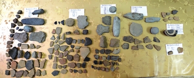 東山頭遺址采集的石器與陶片