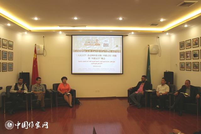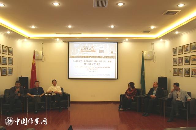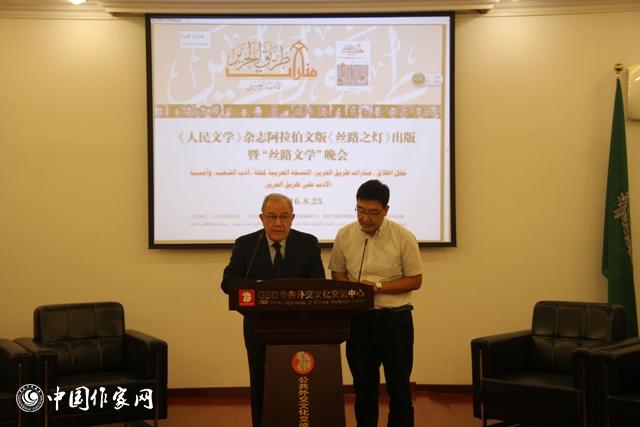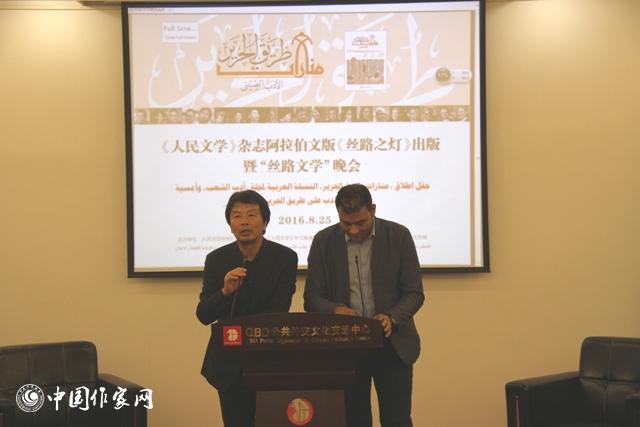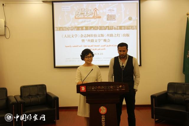 8月25日,《人民文學(xué)》雜志阿拉伯文版《絲路之燈》出版暨“絲路文學(xué)”晚會(huì)在京舉行。中國(guó)作協(xié)主席鐵凝,中國(guó)作協(xié)副主席吉狄馬加,阿拉伯國(guó)家聯(lián)盟駐華大使加尼姆·希卜里、副大使穆罕默德,以及來(lái)自中國(guó)、埃及、巴勒斯坦、摩洛哥、阿布扎比等國(guó)家和地區(qū)的30余位作家、翻譯家、出版人與會(huì)。