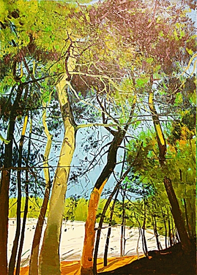 依據(jù)風(fēng)景寫生進(jìn)行的創(chuàng)作,訴說著作者對大地的熱愛與敬畏以及對美好生活的體驗(yàn)。色彩的象征性和用筆的書寫性,使油畫作品具有了中國畫寫意的味道。畫面充滿陽剛之氣,厚重大方且色彩凝重深沉,線條老道,視角與畫風(fēng)自成一格。