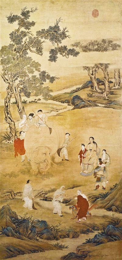 乾隆皇帝洗象圖(中國畫) 丁觀鵬 故宮博物院藏