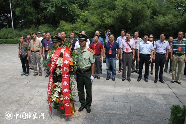 采訪團(tuán)向鄂豫皖蘇區(qū)首府烈士紀(jì)念碑獻(xiàn)花籃