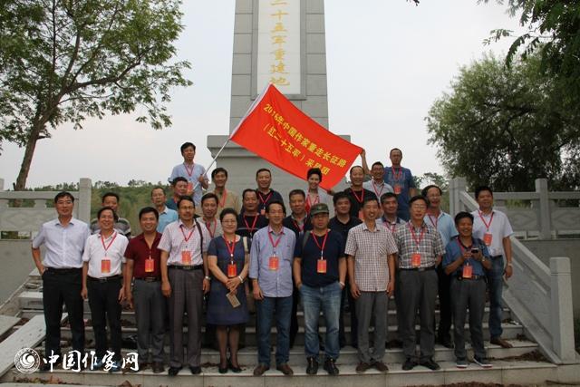 采訪團(tuán)成員在紅二十五軍重建紀(jì)念碑合影