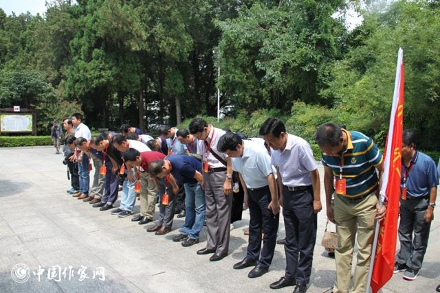 采訪團(tuán)成員在鄂豫皖蘇區(qū)首府烈士紀(jì)念碑前緬懷先烈