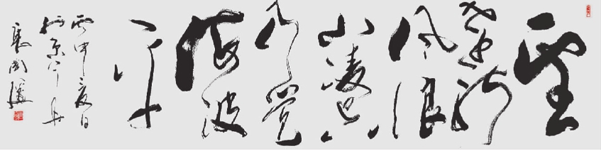 大陸演員唐國強(qiáng)主演的《三國演義》一度風(fēng)靡海峽兩岸暨港澳地區(qū),所刻畫的諸葛亮形象深入人心。他喜歡書法的事情在圈內(nèi)眾人皆知,曾經(jīng)有媒體報(bào)道,他參加影視劇攝制時,無論飾演毛澤東還是雍正皇帝,凡涉及寫字的場景都不用替身,提筆即寫,揮灑自如。從他本次送展的兩幅草書作品來看,兩個橫幅,特別是寫杜牧《山行》一幅,28個字,不多亦不少,輕重緩急拿捏極有分寸,觀者如入山林秋色,神清氣爽,心曠神怡。