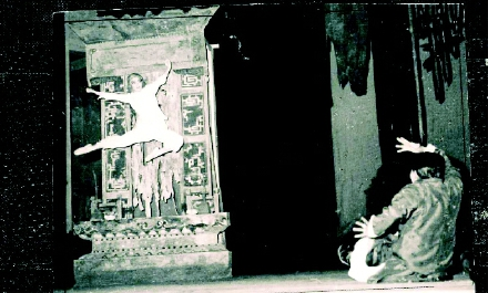 歌劇《白毛女》和芭蕾舞劇《白毛女》都是家喻戶曉的經(jīng)典作品了。1965年以后文化大革命期間,劇院也不再進(jìn)行演出,我除了每天的練功必修課之外,就想找些事兒做。有一天閑來無事翻看畫冊(cè),不經(jīng)意間看到了一張舞劇《白毛女》的劇照,照片上喜兒優(yōu)雅靈動(dòng)的舞姿吸引了我,這張劇照是之前從法國(guó)演出回來在上海觀看上海芭蕾舞團(tuán)的《白毛女》時(shí)留下的。《白毛女》的故事大家都耳熟能詳了,從最初的歌劇,改編成過電影、京劇、芭蕾舞劇,但唯獨(dú)沒有中國(guó)民族舞劇,我就突發(fā)奇想看能不能把它改編成民族舞劇。芭蕾舞劇《白毛女》中表現(xiàn)喜兒的喜、怒、哀、樂全在一雙“立足尖”的腳上,它的經(jīng)典已深入人心,但在劇院我是跳中國(guó)古典民族舞的,如果改編成不立足尖的民族舞劇會(huì)成為什么樣?這引起了我極大的興趣。于是,我就開始著手去準(zhǔn)備。當(dāng)時(shí)也沒什么編排的經(jīng)驗(yàn),演員的選擇、音樂的處理、編導(dǎo)的編排這是擺在我面前的難題,就在一籌莫展之際,恰好上海芭蕾舞團(tuán)來北京,我就找到了他們,跟他們交流了想法,于是我們一起編演了民族舞劇《白毛女》,最后確定由我出演后半段的白毛女,群眾演員也是從當(dāng)時(shí)離歌劇舞劇院不遠(yuǎn)的中國(guó)戲校找來的,緊鑼密鼓地排練了一個(gè)月就登臺(tái)演出了。