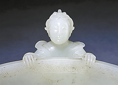 相比北京、揚(yáng)州等地玉雕,蘇州玉雕極富特色,其選料上乘,切磋琢磨精益求精,精雕細(xì)琢是蘇州玉工的突出表現(xiàn)。故宮收藏的玉器中,相當(dāng)一部分是蘇州玉工創(chuàng)作的玉雕精品,最著名的就是“桐蔭仕女圖”。這件作品選用的玉材本來(lái)是玉工在大料上取碗時(shí)剩下的殘料,蘇州玉工匠心獨(dú)運(yùn),巧妙地將碗洞做成了兩扇錯(cuò)開(kāi)的月亮門(mén),燈光從背面透入,一名仕女立于樹(shù)蔭下,推門(mén)向外翹首觀望。乾隆皇帝看到這件作品后,擊節(jié)贊賞,并即興賦詩(shī)一首。