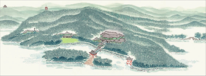 西湖本來就是以荷花聞名的,從世界的角度來說是和美,從西湖的角度來看,以荷花為主題做詩詞的很多,“接天蓮葉無窮碧,映日荷花別樣紅” 。還有為什么畫西湖風(fēng)光?那就是要體現(xiàn)西湖的那種優(yōu)雅、安靜、綠色、寧靜的意境,有一種郁郁蔥蔥、生機(jī)勃勃的內(nèi)在生命力之感。我們講“上有天堂,下有蘇杭” ,要表現(xiàn)一種具有生命力的、像天堂一樣美的境界,實際上我要講的就是這樣一個故事。所以我的方法就是將宋代米氏云山進(jìn)行一些現(xiàn)代轉(zhuǎn)化。作品把現(xiàn)代建筑和現(xiàn)代的山水完全融為一體,是這張畫成功的地方。我認(rèn)為要古為今用,不能古為古用,如果畫出來像古代作品一樣,那藝術(shù)的方向就有問題了,我們肯定要現(xiàn)代才能代表現(xiàn)代,才能代表歷史。