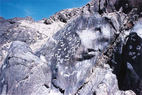 新疆且末縣莫勒恰河東岸的昆侖山巖畫