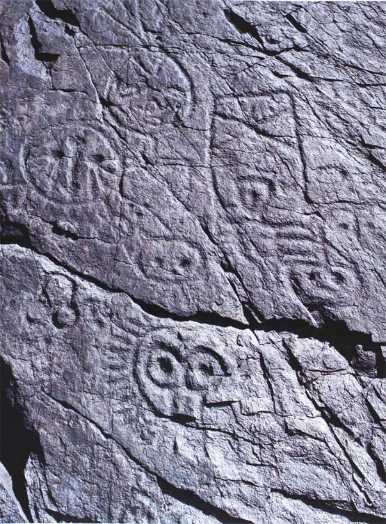 除了上面列舉的巖畫密集區(qū)域,尚有一些頗具代表性的巖畫地點值得一提。它們是云南的路南、四川的珙縣、西藏的日土、甘肅的嘉峪關、黑龍江的海林、江蘇的連云港、福建的華安、臺灣的萬山等。盡管這些地點的巖畫數量不太多,卻代表了一個特定的區(qū)域,使中國古代巖畫分布上的環(huán)狀結構得以形成。例如,1985年在西藏日土縣首次發(fā)現(xiàn)的50余幅巖畫,就填補了“世界屋脊”上巖畫分布的空白。江蘇連云港將軍崖和福建華安仙字潭巖畫上的深奧圖案,則使數量相對稀少的東南沿海巖畫具有了一種獨特的神韻。