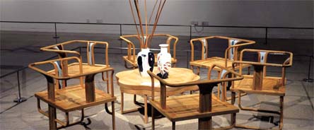 把瓷板鑲嵌進(jìn)木材做成家具,難度可想而之,瓷的窯變本就難以控制,再與另一種材質(zhì)融合,還要優(yōu)美和諧,實(shí)在不易,所以,當(dāng)那些或具古意或頗文藝的家具擺在房間里時(shí),看到的人幾乎都為藝術(shù)家的設(shè)計(jì)與實(shí)踐而感慨。世間材質(zhì)萬千,都有其存在的意義和旨?xì)w。兀自生長,它們是天地間的造化,若遇到識才之人,把它們的紋理、顏色以符合本真的方式做成藝術(shù)品,也是另一種遇見。自然,這里面是出境界的。無論一幅畫、一只瓶,還是一把椅子,渾然天成是最重要的,設(shè)計(jì)的意義在于最大限度彰顯它的特質(zhì),不搶戲,不生硬,不矯情。陳家泠的設(shè)計(jì)大多做到了這一點(diǎn),談到國內(nèi)的建筑設(shè)計(jì)時(shí),總是淡然的他有些痛心疾首,不解那些設(shè)計(jì)師為什么把樓設(shè)計(jì)得那么丑陋不堪,在他看來,誤導(dǎo)民眾的審美是極大的罪過。他至今所花的氣力,也不過是尋美而去,做一些賞心悅目的藝術(shù)罷了。