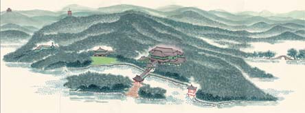 接到以西湖為主題的創(chuàng)作任務(wù),陳家泠便開始構(gòu)思,他想起了自己2010年創(chuàng)作的《西湖十景》,當(dāng)年他在杭州舉辦個(gè)展,要回饋故鄉(xiāng)和母親。這一次,還是畫西湖,他不打算再畫中國畫里常見的西湖美景,想畫的是G20峰會(huì)舉行之地,用他的話說,是西湖的新景觀、新面貌,他甚至有一個(gè)野心,就是希望畫中的景色能成為西湖的“新勝地”。在陳家泠眼里,西湖是人間仙境,山水草木無一不蘊(yùn)藏著生機(jī)與靈氣,西湖也是文化勝地,文人墨客從來都流連忘返,不惜筆墨。在《西湖景色》里,他想畫出西湖的自然美和文化美,實(shí)現(xiàn)現(xiàn)實(shí)性與前瞻性、現(xiàn)實(shí)與夢想、現(xiàn)實(shí)與藝術(shù)的融合。思謀許久,陳家泠選擇以深淺不一的綠作為畫面主色調(diào),以山水畫中的“米家點(diǎn)”為基本技法,暈染出一幅空靈、優(yōu)雅、迷蒙而富有生命力的西湖山水圖。傳統(tǒng)的米家山水僅用水墨,陳家泠卻在自己的創(chuàng)作中加入顏色,以期更符合現(xiàn)代審美,花青、藤黃,加上墨色勾線,整幅畫用色簡潔、大氣,山重水復(fù),綠意重重,呈現(xiàn)出蓬勃的生命力和高雅的意境,而這,也與陳家泠幾十年來的追求一以貫之。