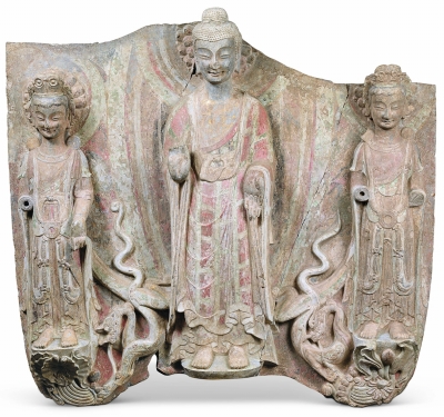 一佛二菩薩貼金彩繪像 東魏 青州龍興寺窖藏