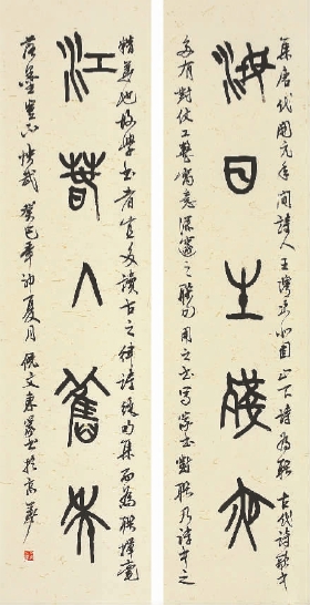 以倪文東的小篆書法為例,體勢活潑靈動,不求四平八穩(wěn),多有秦度量詔版篆書的意趣,其灑落處可謂“痛快” ;而其筆法又多有秦刻石小篆的古厚之氣,生澀勁健而絕不浮滑,其厚重處又可謂“沉著” 。藝術(shù)之表現(xiàn),得“沉著”則難得“痛快” ,得“痛快”又易失“沉著” ,倪文東于此可謂兩得之。