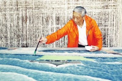 陳家泠在創(chuàng)作《西湖景色》。許根順攝
