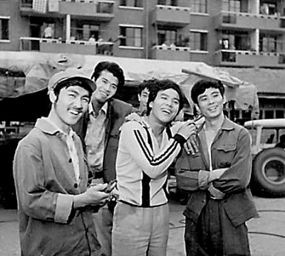 姜樹森(右二)在電影拍攝現(xiàn)場。資料圖片