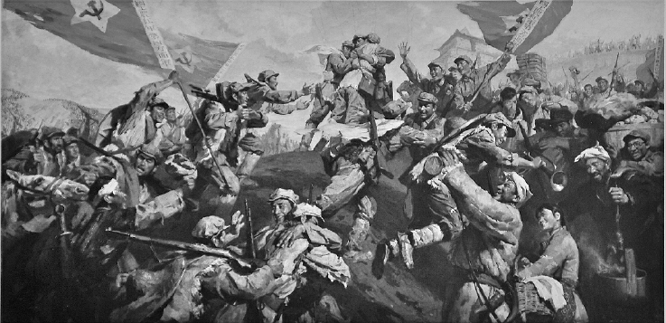 《三大主力會師》蔡亮、張自嶷1977年 尺寸:331×166厘米 中國人民革命軍事博物館藏 布上油畫