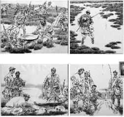 一天,老班長看見水塘里有魚跳出水面,他趕緊找出一根縫衣針,烤紅了彎成釣魚鉤,將釣來的魚燉成魚湯給幾個小傷病員吃,他自己卻依然吃著草根野菜,只是碗里多了一些剩下的魚骨頭。