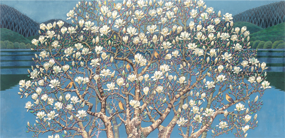 祝大年在20世紀(jì)現(xiàn)代美術(shù)史上具有不可替代的重要地位。他的作品描繪精致、色彩濃麗,在傳統(tǒng)重彩藝術(shù)中注入了神秘的浪漫主義情懷,其技法和構(gòu)圖在整體上從繁到簡(jiǎn),局部上從簡(jiǎn)到繁,既寫(xiě)實(shí)又裝飾,既精細(xì)又概括,既通俗又高雅,既現(xiàn)代又傳統(tǒng),風(fēng)格獨(dú)樹(shù)一幟。他的寫(xiě)生是創(chuàng)造性的寫(xiě)生,他的創(chuàng)作是建立在寫(xiě)生基礎(chǔ)上的創(chuàng)作。他開(kāi)辟了一條鮮明獨(dú)特的藝術(shù)之路,指引并影響中國(guó)現(xiàn)代工筆重彩、壁畫(huà)、陶瓷的發(fā)展方向和全新藝術(shù)審美?!八囆g(shù)高于生命,理想高于生活”的精神追求始終體現(xiàn)在他的作品之中。