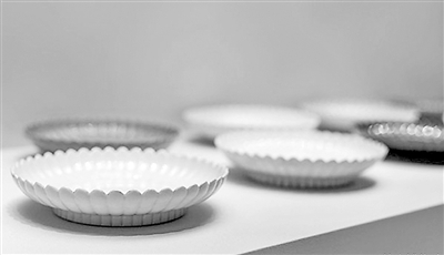 菊瓣盤造型,源自宋代漆器,取秋菊之形,盤壁呈盛開的菊花瓣?duì)?,菊瓣棱線堅(jiān)韌有力,線條俊秀優(yōu)美,體現(xiàn)出雍正官窯顏色釉瓷器雅、秀、精、純的特征。十二色菊瓣盤是顏色純正的單色釉,其燒制方法是先燒好白釉盤,然后在白釉上施所需的各色彩釉,再入窯二次覆燒。因有白釉鋪墊,故燒成之后釉汁瑩潤,釉面光潔勻凈。這套單色釉菊瓣盤,白釉純凈、黃釉華貴、紅釉熱烈、藍(lán)釉靜穆、醬釉凝重、湖藍(lán)靜謐、灑藍(lán)飄逸、胭脂紫嫵媚、葡萄紫精純、秋葵綠釉鮮嫩,單件純?yōu)橐簧?,組合起來卻五彩繽紛、顏色萬千,美不勝收。
