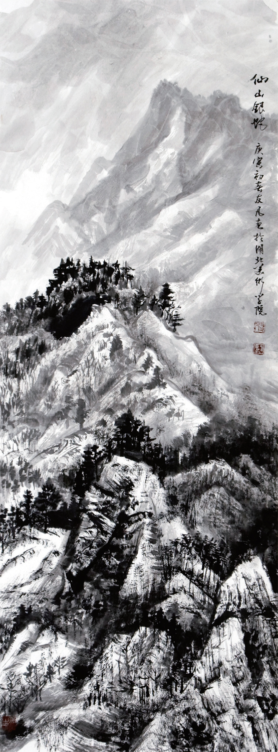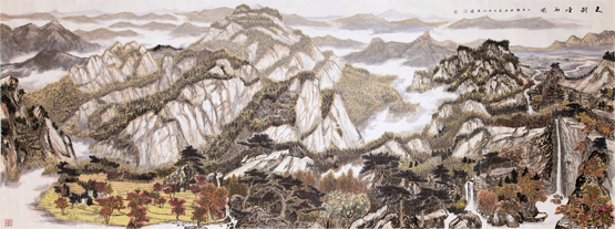 丹青畫史,巨匠立宗,寄興筆墨,假道山川,代不乏人。荊浩隱于太行,畫臻怪石古松,凡數(shù)萬本,“六要”“四勢”,歷代宗之。范寬卜居太華,飽覽云煙陰晴,形諸筆端,山水人物范家筆,畫史推崇為第一。董源作稿江南,首創(chuàng)披麻皴法,籠罩后世畫風(fēng)。黃公望皮袋置筆,遇好景,見異樹,模寫記之,富春山居,獨樹高標(biāo)。苦瓜和尚,拜黃山為師,為黃山代言,搜盡奇峰,詩畫雙絕。山川造化,四時四景,荊山楚水,氣象萬千?!疤扉_圖畫”,千古真諦。是故,師今人不若師古人,師古人不若師造化。